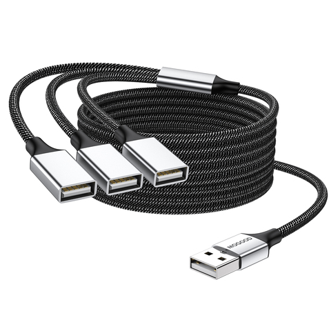3-in-1 OTG-Adapterkabel mit Dual USB 2.0 Stromkabelverlängerung zum Laden/für Daten, 4-Port-USB-Verlängerungskabel, USB-Splitter
